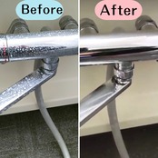 頑固に付着した石けんカス、水アカ汚れはもちろん、面倒な“もらいサビ”までも強力に取り除いてくれます。
